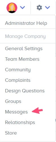 To assign different administrators to different areas, go to the Gear icon and Messages.